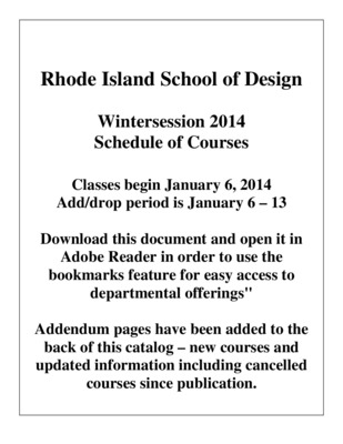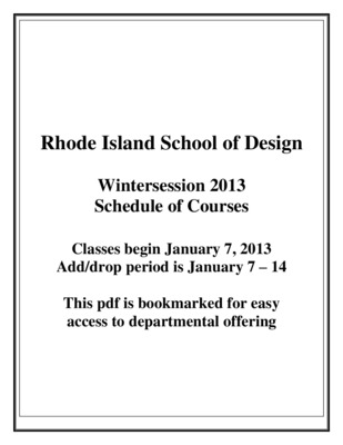 The course catalog provides important information about Rhode Island School of Design (RISD) which is accessible to students, staff and faculty, as well as the general public.