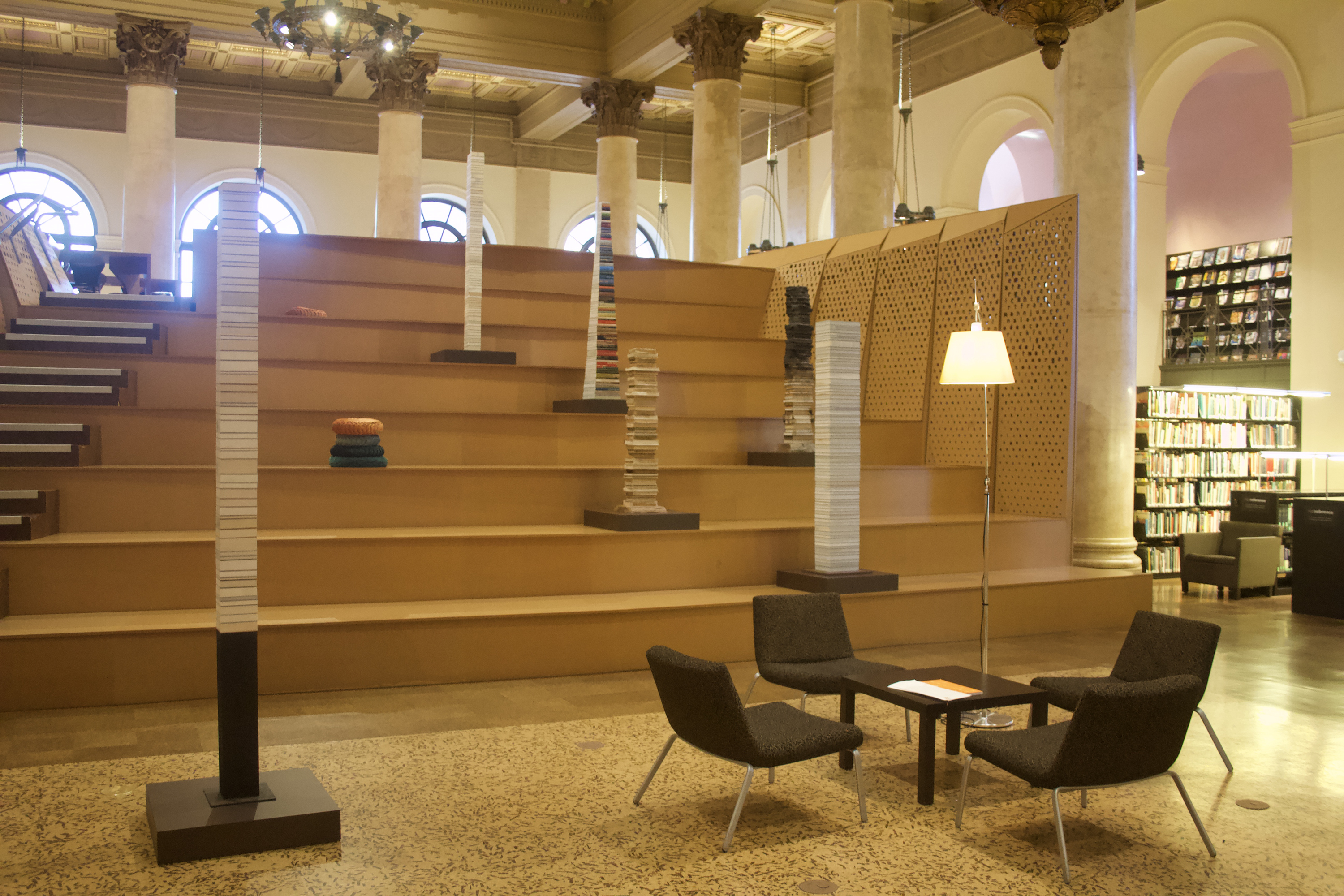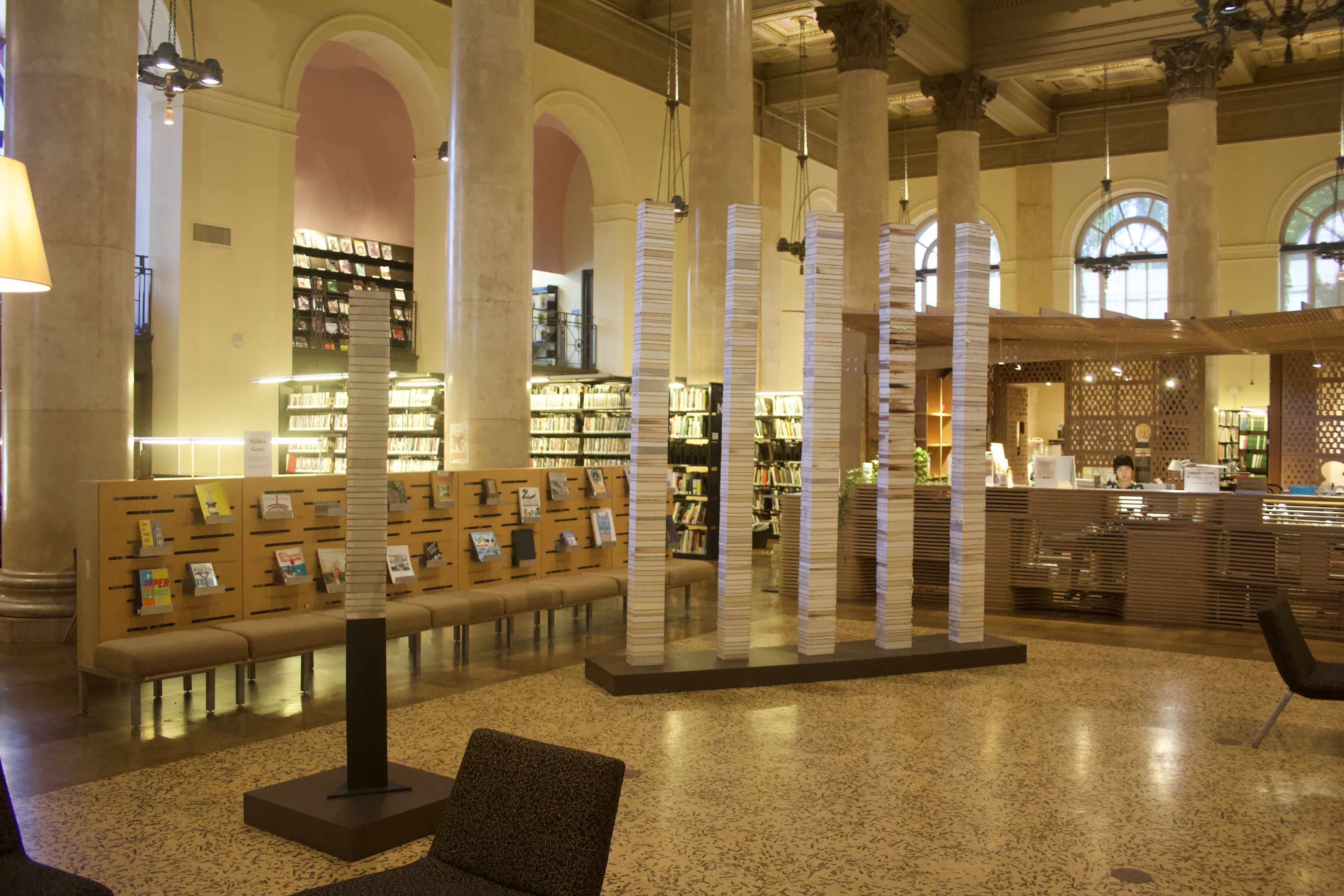 A selection of creatively remade artists' books from Special Collections and also featuring "Stacks of Books" by Jared Bark. An altered book is a form of mixed media that changes a book from its original form into something new. Methods of alteration include painting, drawing, stamping, collaging, cutting, tearing, folding, and embedding things. The resulting object differs in appearance and meaning from the book or books that came before. Sometimes a physical book is used and upcycled, if you will; sometimes the finished product is editioned and printed digitally; sometimes the process results in a one of a kind sculptural work. But every time, the altered book inspires viewers to look closely and explore that book in a new way.