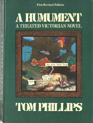 367 pages : color illus. ; 18 cm. "After its first publication in book form in 1980, 'A Humument' rapidly became a cult classic. This new revised edition incorporates over fifty entirely new pages."--inside front cover. Gift of the RISD Museum. "A Humument has been a work in progress since 1966 when artist Tom Phillips set himself a task: to find a second-hand book for threepence and alter every page by painting, collage and cut-up techniques to create an entirely new version. The book he found was an 1892 Victorian obscurity A Human Document by W.H. Mallock and Phillips transformed it into A Humument. The first version was printed by the Tetrad press in 1973, and Phillips has continued to transform it, revise it and develop it ever since." -- Artist website (https://www.tomphillips.co.uk/humument). Curated title for Fleet Library Special Collections exhibition Stacked & Altered, summer 2022.