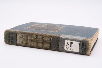 1 object. Altered book, consists of a portion of the spine (blue buckram) and a small part of the text block. Portions of words and illustrations can be seen as pages are flipped. Possibly made by a Rhode Island School of Design student. Donated to the library by Jan Baker, a former graphic design instructor who taught classes in artists' books. Case binding. Text in English. Curated title for Fleet Library Special Collections exhibition Stacked & Altered, summer 2022.