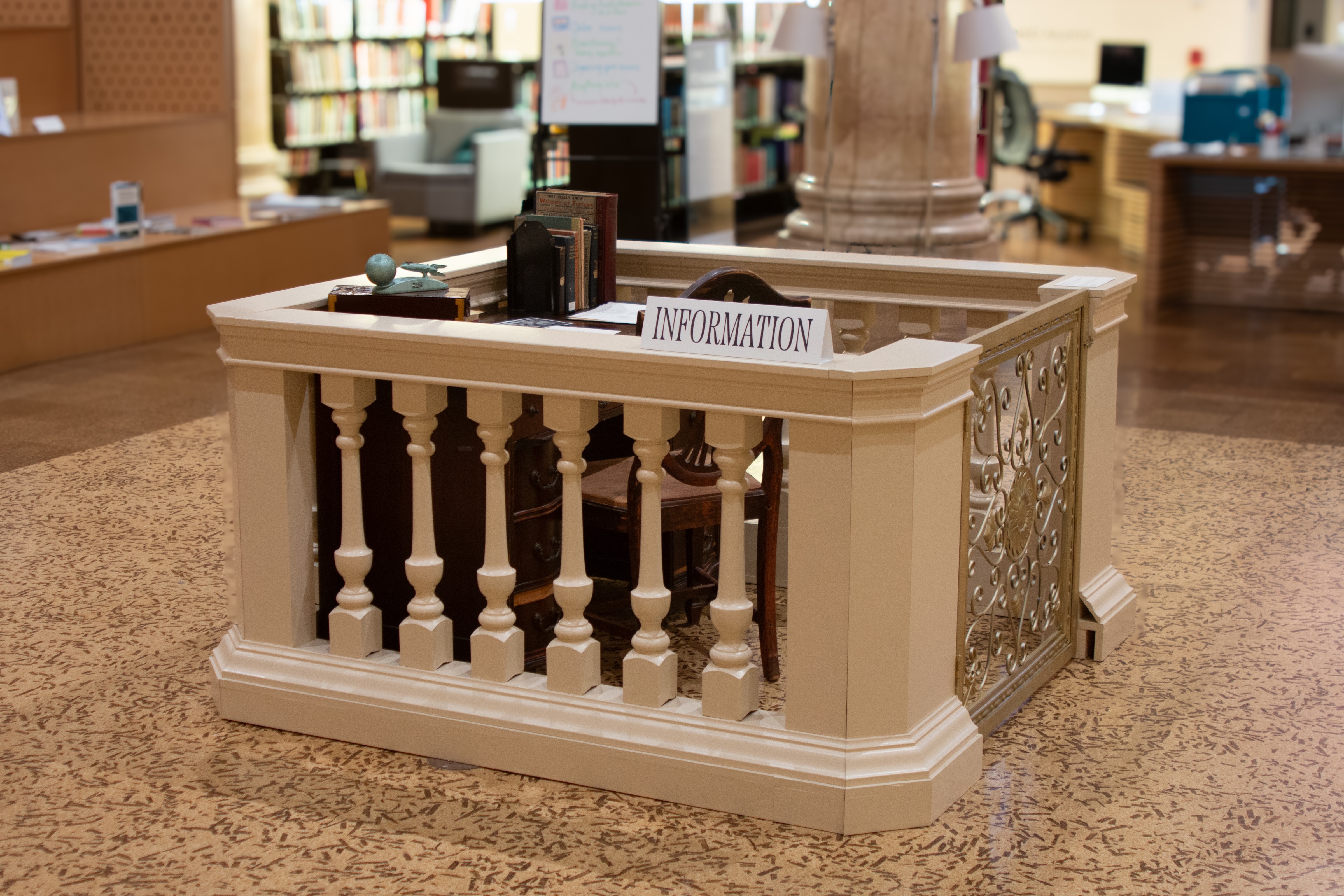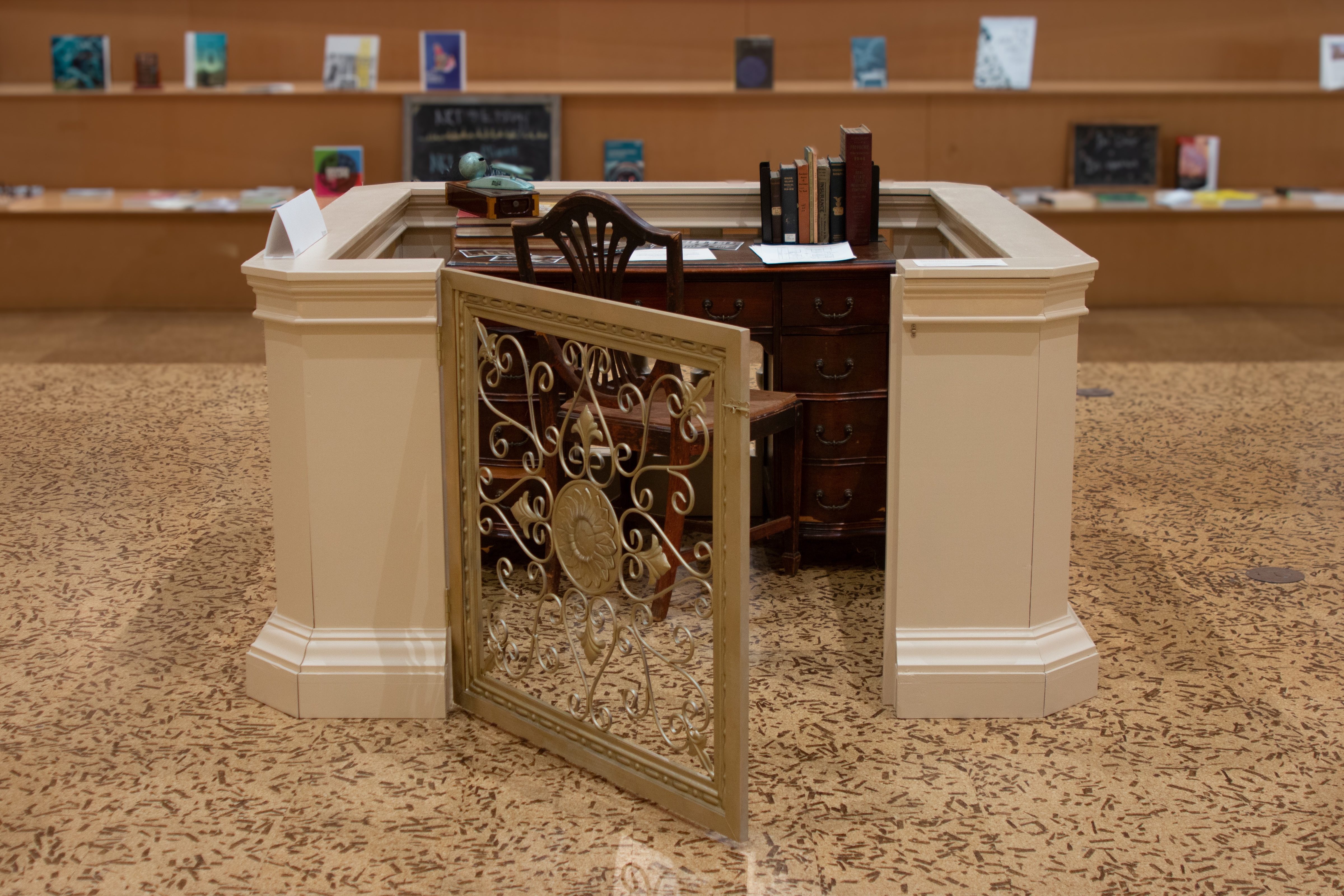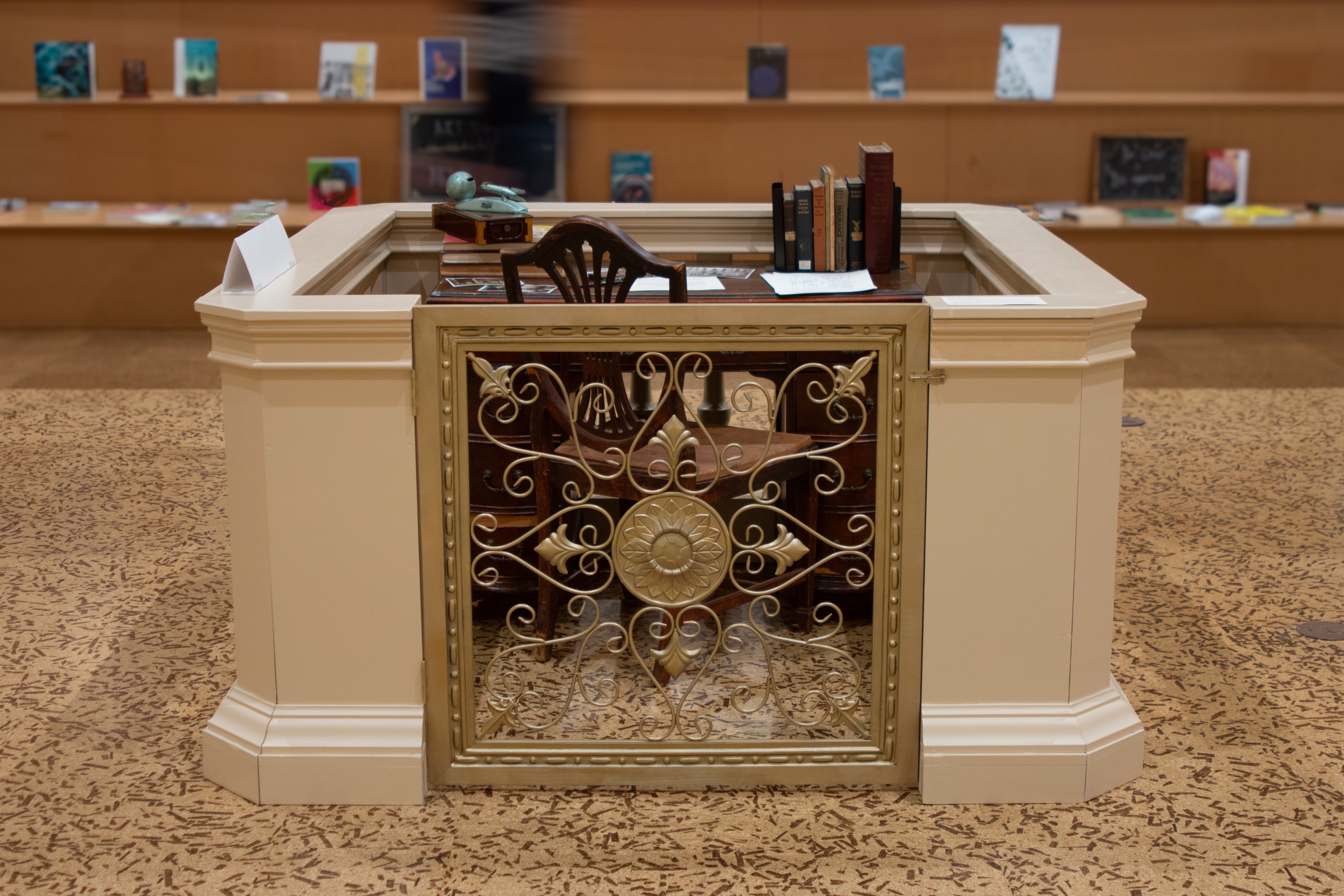 Ok, it’s not actually 1919, but I did actually recreate a 1919-era information desk, and there is actually a scavenger hunt! It’s short and fun and historically immersive, and you will, in fact, be entered into a raffle to win a real twentieth-century safe deposit box pulled straight from the 500-ton vault that still exists beneath RISD’s Fleet Library. As many know, the building at 15 West used to be a luminous bank. This project seeks to tangibly contextualize RISD’s spatial history within the larger history of Providence, and I hope you will take a moment to stop by and step into past. (The Library is open to Brown students with ID during open hours.) This work will be up through mid-February 2023.