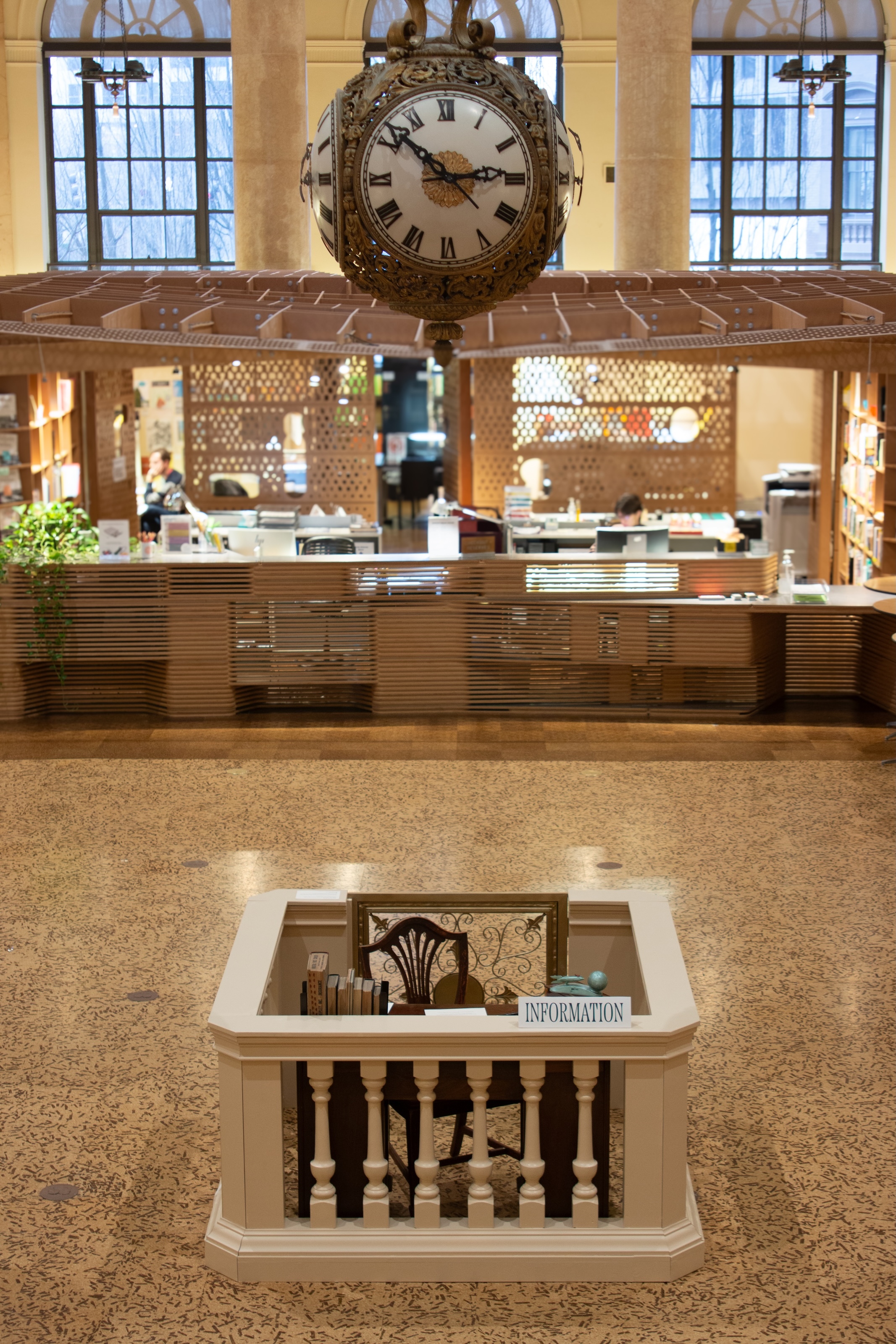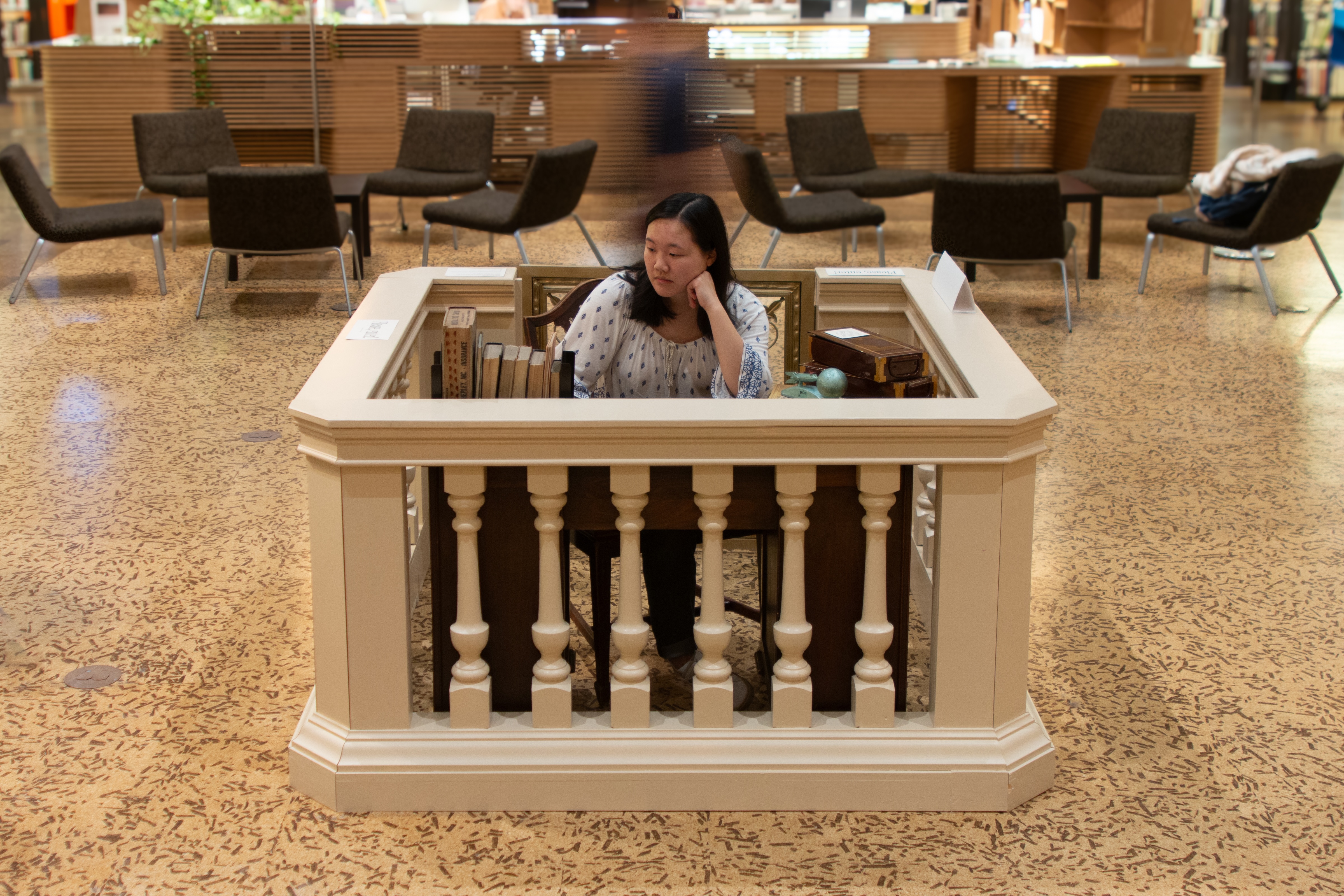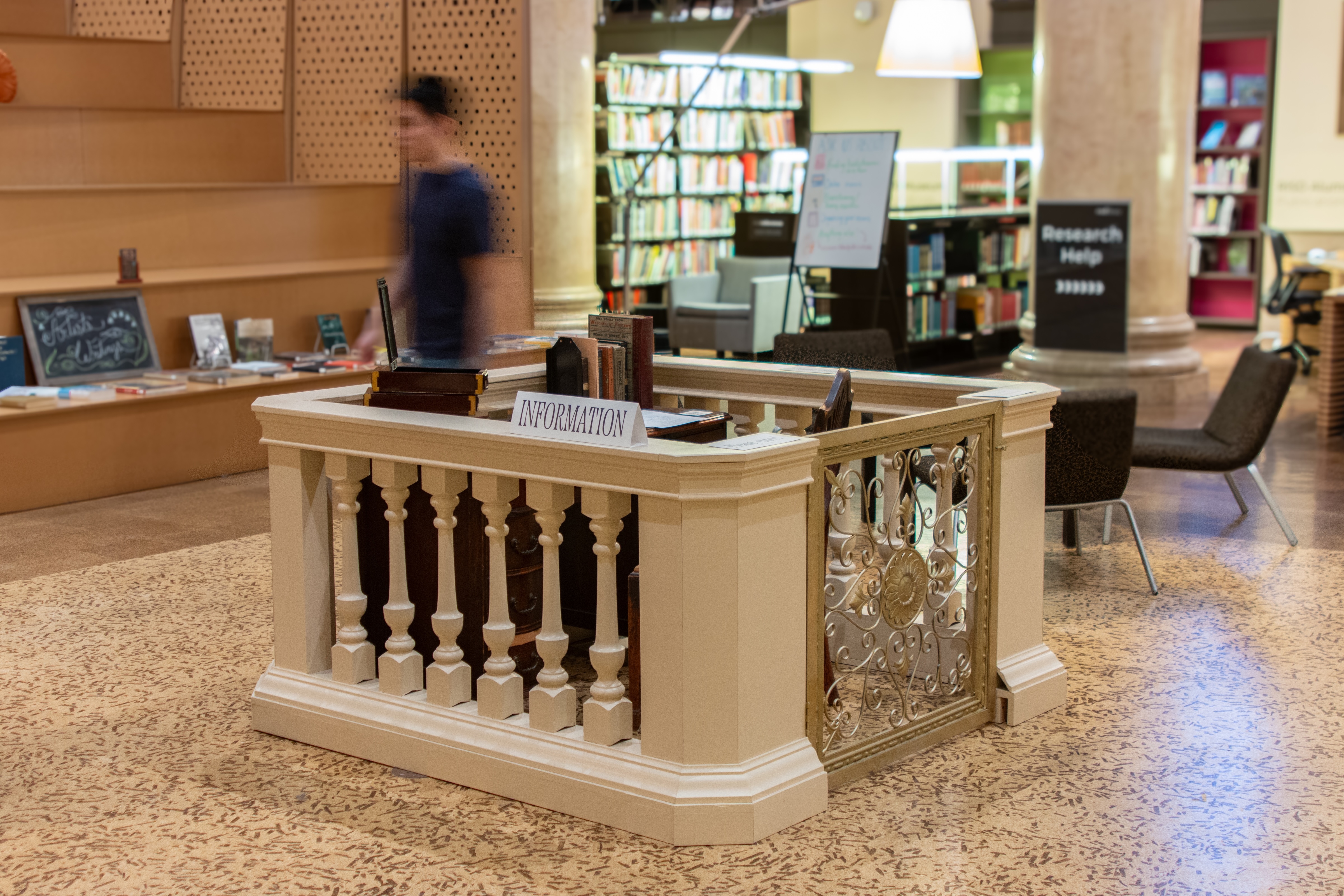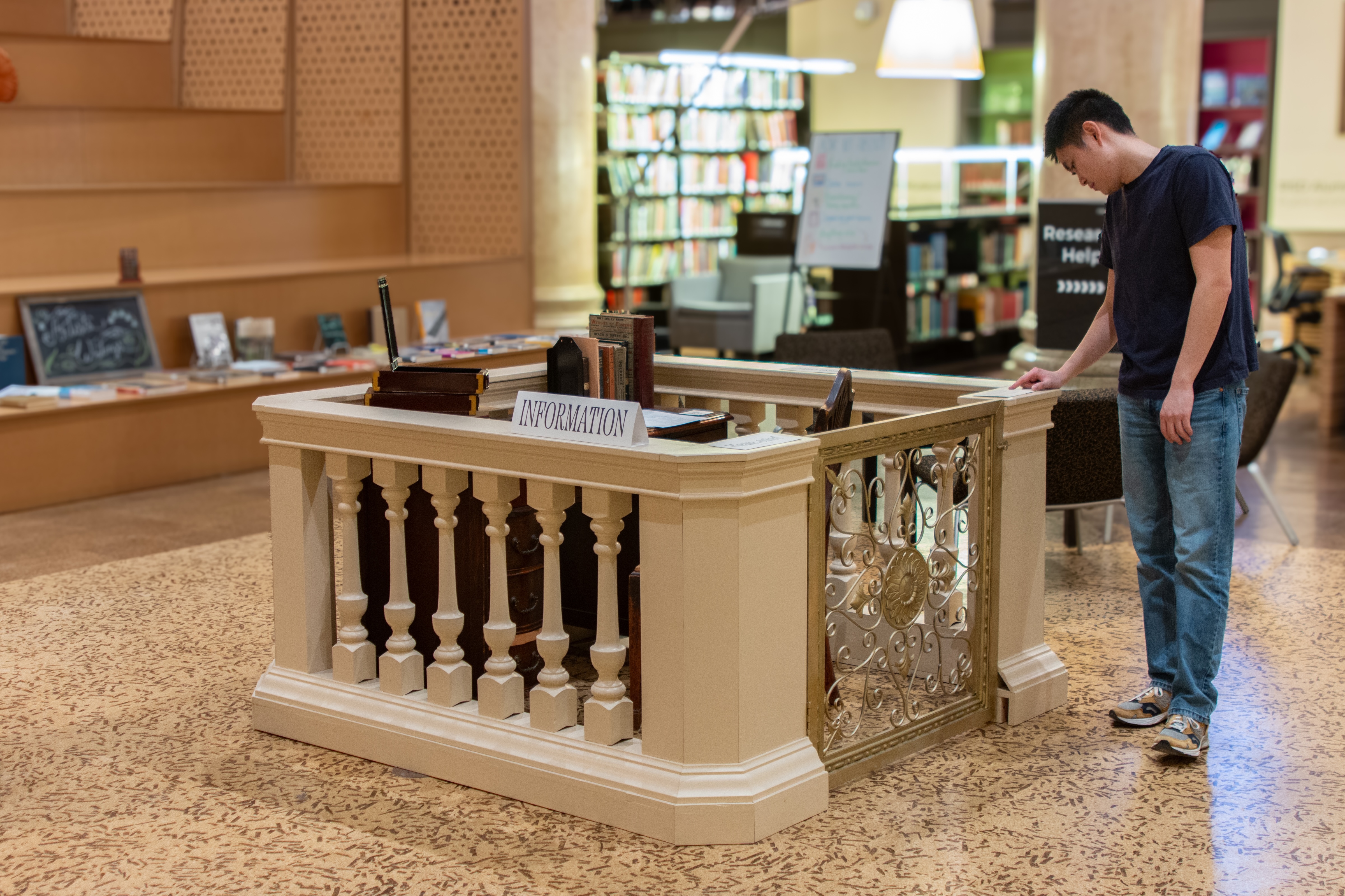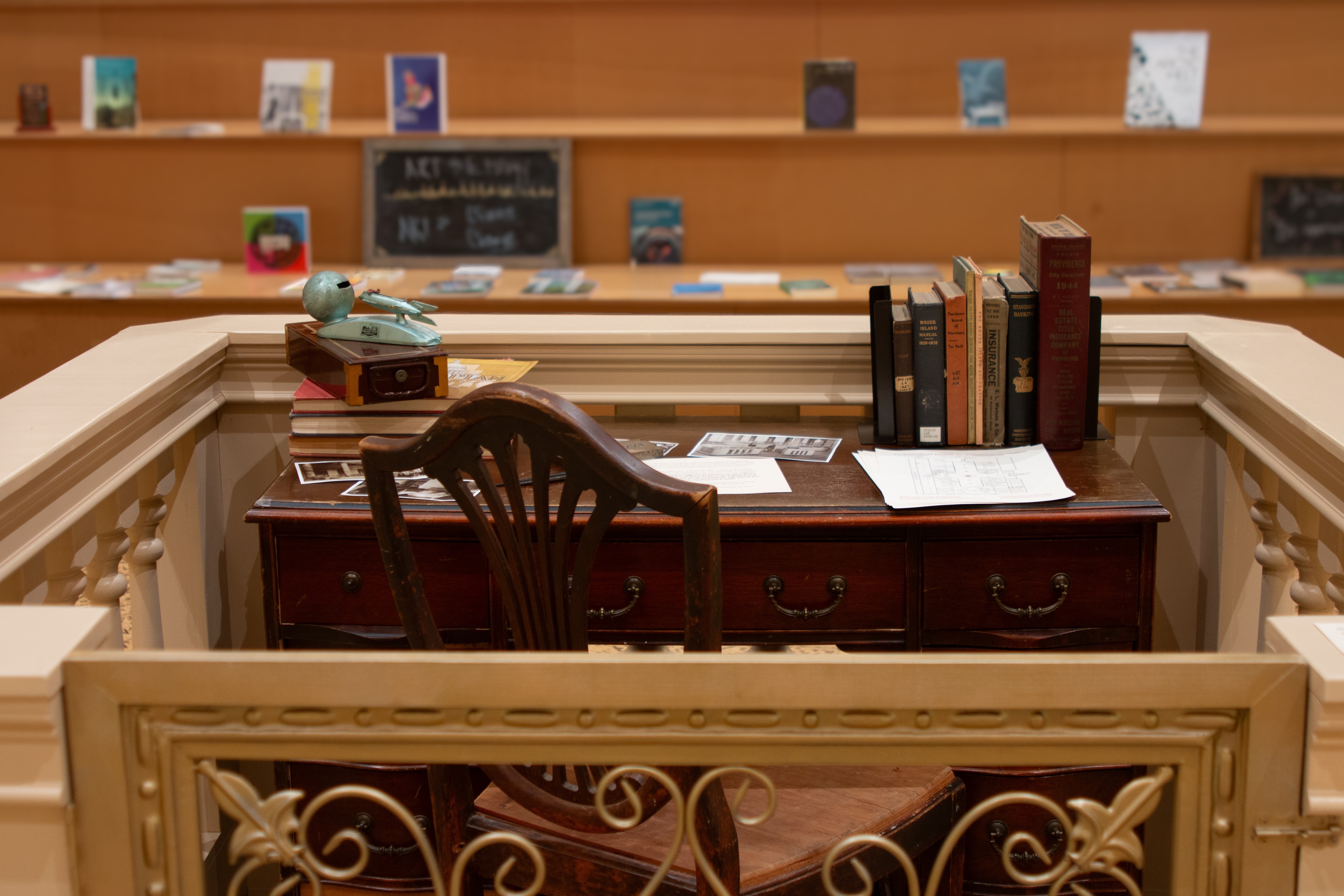 The building at 15 Westminster Street currently holds RISD’s Fleet Library, but it was originally built in 1919 for the Rhode Island Hospital Trust Company, a grand commercial bank. From a desire to inspire a sense of wonder and recontextualize RISD’s spatial history within the larger history of Providence, rose an installation and scavenger hunt that briefly served as a portal to the building’s past.