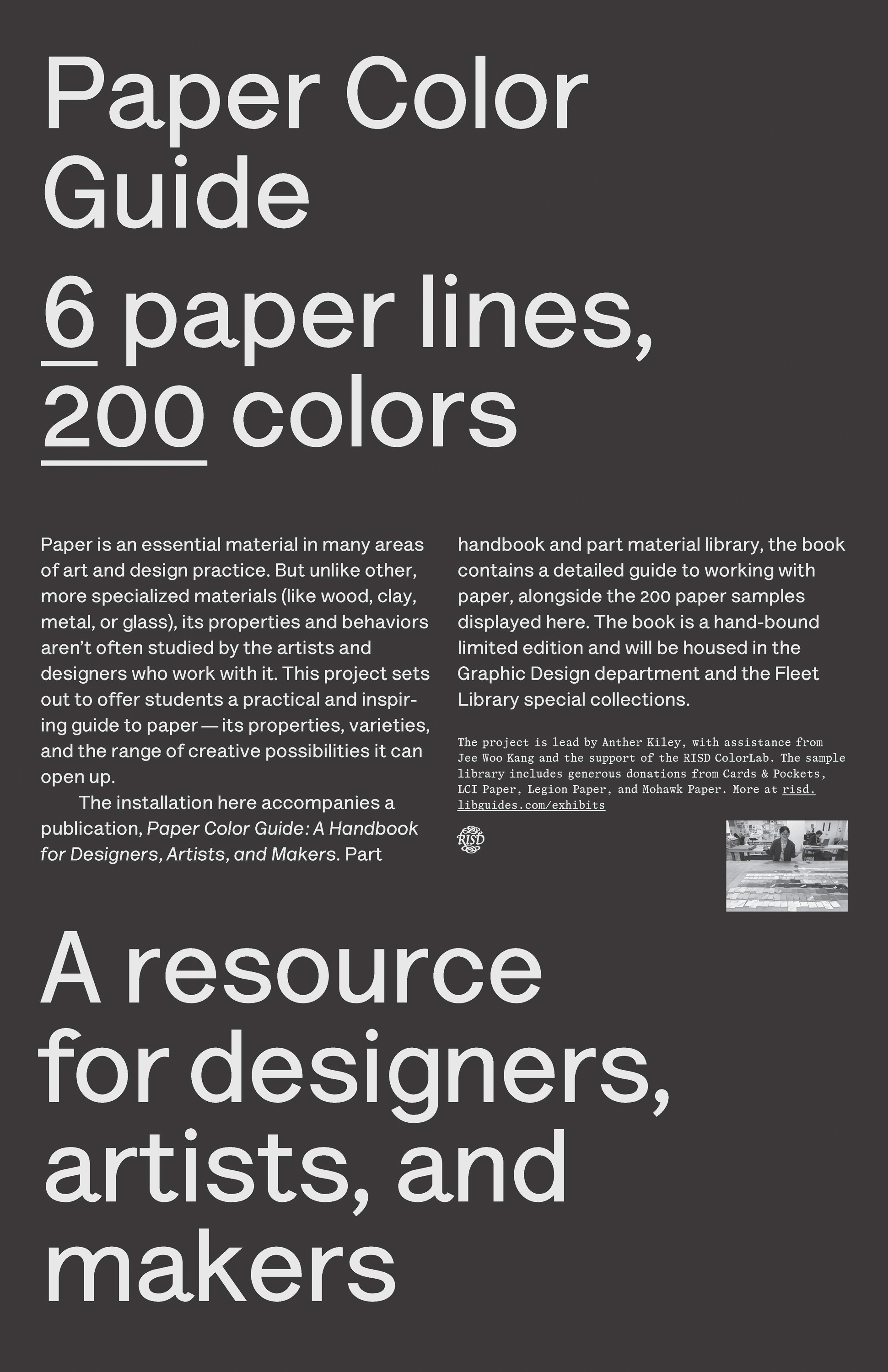 Paper Color Guide 6 Paper Lines 200 Colors; Anther Kiley Color Lab Fellowship Exhibit, Fleet Library at RISD, 2nd Floor March - April 2026 Talk: Monday. April 14th at noon in the GD Commons