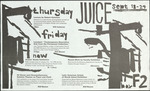 Juice was a short-form student publication primarily intended to publicize upcoming events occurring on or around campus. The September 18, 1995 issue highlights a lecture by environmental activist and photographer Robert Ketchum, Artists' Books Exhibition, and other exhibitions for the week of September 18-24.
