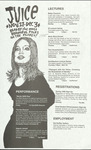 Juice was a short-form student publication primarily intended to publicize upcoming events occurring on or around campus. The November 27, 1995 issue includes the listings of the lectures, exhibitions, movie screenings, and other campus events for the week of November 27-December 3. The issue also highlights performance for World AIDS Day, and video screenings on AIDS.