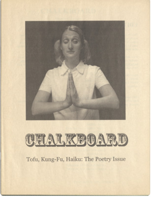 Chalkboard was a student creative journal established in 2001. The March 2001 issue features poetry from RISD students, staff, and faculty, along with interviews of RISD poetry instructors Rick Benjamin and Michael Magee.