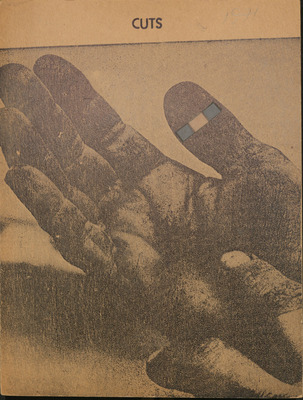 CUTS was a student publication that highlighted student work in woodcuts and other printmaking techniques. It was published as an accordion book and featured work by Melissa Matlock, B.J. Strange, Margaret Goodwill, "Waring," and others.