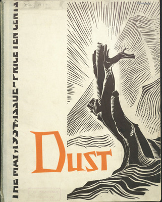 Dust was an experimental student publication printed in January 1934 by two students under the direction of a local printing company. It includes several short stories written by students and illustrated with wood and linoleum cuts created by other students. Higher resolution scans and the physical documents can be requested by contacting the Archives.