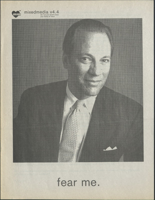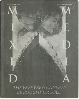 Mixed Media began as the student publication Your Name Here. The January 30, 2005 issue includes articles on a class on the art of the music video, a student trip to Boston, a manifesto of "badism," a student's accident while swimming, a student accident while sledding, restaurant reviews, film reviews, and an inerview with comic writer and illustrator Dan Clowes, along with the comic "Scorpio" by Andrew Kaiko, student creative work, event notices, and other announcements.