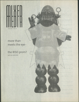 Mixed Media began as the student publication Your Name Here. The March 2, 2003 issue includes articles on the lack of underclassmen working on Mixed Media, RISD's ignorance of the Black community, water consumption at RISD, abortion, a student visit to Cappadocia in Turkey, RISD-Brown Hillel activities, the passing of RISD janitor Mel Bruins, student opinions on life at RISD, film and music reviews, and the Chace Center construction project, along with the comics "Juan Two Three" by Juan Diaz, "Atlas and the Beast from Time Forgotten," "The Incredible Tales of Roger: Deep Space Janitor" by Browne, [David Bowie comic] by Chandler O'Leary, "A Beary Fishy Day" by Roger, "Freedom" by Neil Robinson, "Stuff of Dreams" by Andrew Kaiko, event notices, and other announcements.