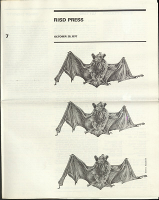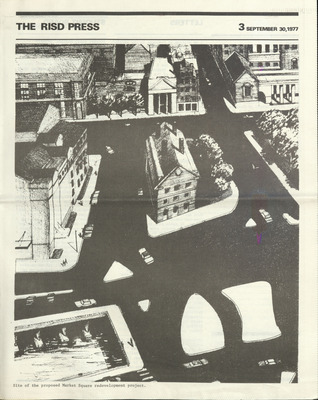 RISD press was a student newspaper published weekly in the early 1970s, a self-described attempt at consolidating all the information outlets of the school, including the previous student newspapers, Montage. The issue of September 17, 1976 includes articles on first Provost Jack Stewart, Carr House, new faculty, and George Benson, along with a guide to campus for freshmen and two pages of comics.