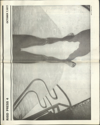 RISD press was a student newspaper published weekly in the early 1970s, a self-described attempt at consolidating all the information outlets of the school, including the previous student newspapers, Montage. The issue of October 1, 1976 includes articles on the RISD Museum, a Trinity Square Playhouse production of "A Flea in Her Ear," new aluminum siding on Allen House, the Brown Gay Men's Lib group, the sailing team, and a revised student charter, along with the comic "Space Freaks" by Ian Tetrault and an events calendar.