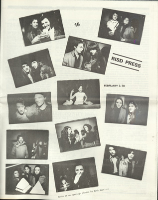 RISD press was a student newspaper published weekly in the early 1970s, a self-described attempt at consolidating all the information outlets of the school, including the previous student newspapers, Montage. The issue of February 4, 1976 features a Photography Review and also includes an article on a lack of energy at RISD, creative writing, editorials and letters to the editor, event notices, and student board minutes.