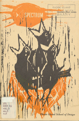 Spectrum was a publication released in the early 1950s by the undergraduate students at Rhode Island School of Design. This issue from 1961 contains artwork by RISD students, including photographs, drawings, paintings, woodcuts and art in other media. Contributors include Lois Goodwin, Samuel Otis, Bruce Bacon, David Bumbeck, Victoria Roman, Bette Young, Allan Peterson, Francisco Baron, Warren Hall, John Coughlin, Eugene Beck, Anthony Thompson, William Catlin, Michael Ashcraft, Jan Wampler, and Ronald Arnholm.